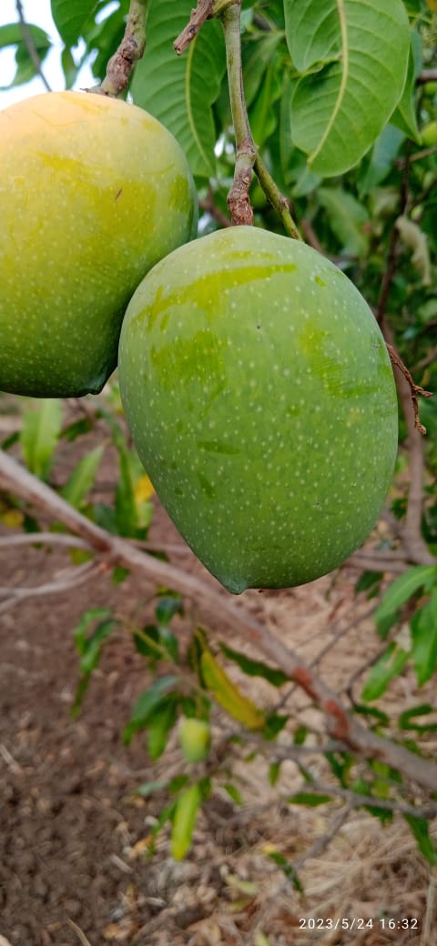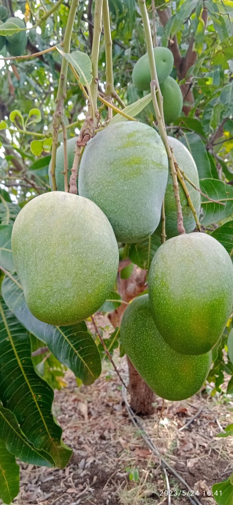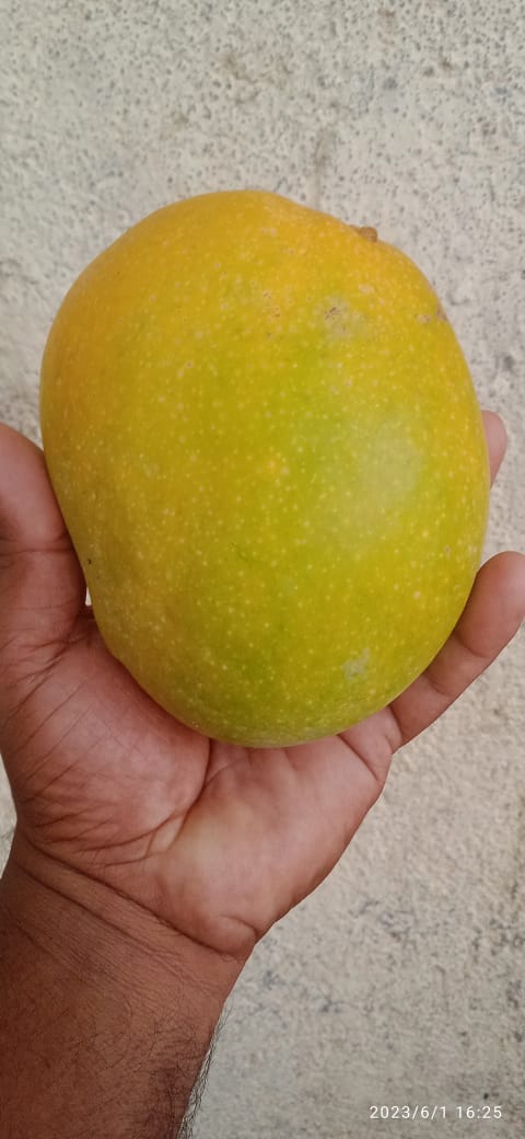 This hybrid is from a cross of Neelum and Alphonso. Tree moderately vigorous, precocious, fruits are medium sized, attractive in colour and free from spongy tissue.